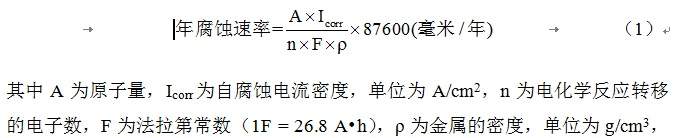 由腐蚀电流密度(icorr)如何推算腐蚀速率(mm/y)? 以前好像看到过具体公式,请高手指点。 |