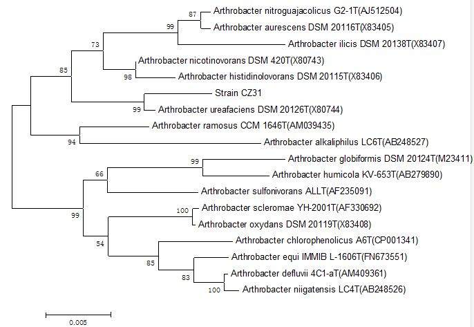 请教高手,正在作系统进化树,如果仅仅根据亲源关系的远近选择菌株进行比对,比对的菌株16s的同源性都在95%,而且都是同一个属,这种比对好像不是很有意义,见图,是不是可以选择其他种属的菌株进行比对啊,如何选择? CZ31.JPG |