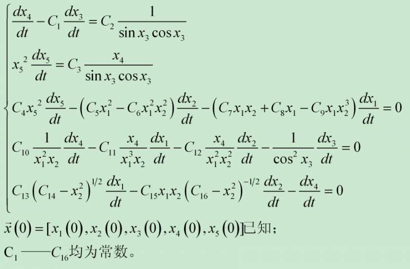 matlab扔的时间长了,自己编程序总是出现各种各样的问题,还是觉得这种东西matlab高手解决比较容易一些,其中C1-C16都是常数(通过前面的程序计算得到的),方程的初始状态给定,求微分方程组的数值解,希望能有高手帮我写下程序,用 .M 文件,谢谢啦! 一阶变系数微分方程组.jpg |