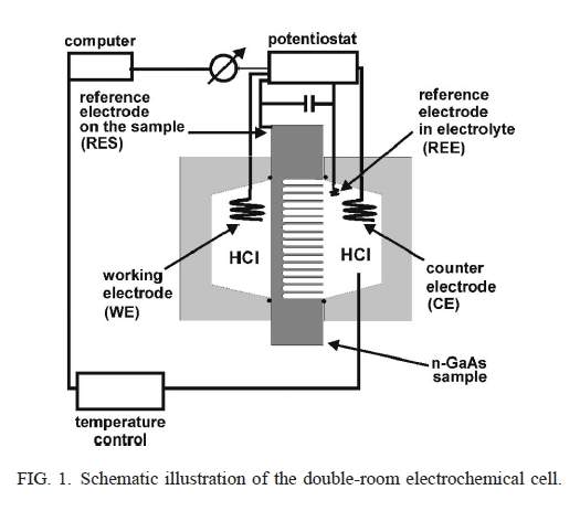 刚接触电化学,最尽看文献遇到了双槽电化学腐蚀法,但不知道其工作原理。为什么样品不是工作电极呢?又是如何通过电化学工作站对样品进行腐蚀的?现附图如下,求大神提点一二,不胜感激!多谢多谢!