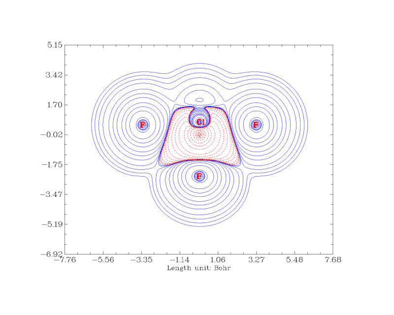 最近在用Multiwfn做电子密度差分图,在差分时我直接用分子减去组成原子的电子密度,比如ClF3,中间红色的是负值外围蓝色是正值,图做出来了之后我却怎样分析其成键与否的问题?也就是说我们究竟应该如何选取差分对象来分析两种元素之间是否成键? DISLIN_3.PNG |