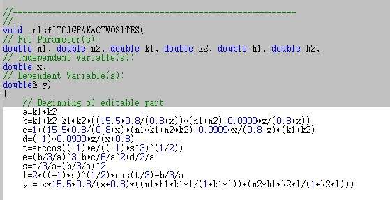 在ORIGIN8.0 里面拟合数据,拟合的方程是自己编进去的,类似于编程把,公式比较复杂,分段写的,而且公式里面有COS,arccos这样的运算,也是写进去的,最后检查公式没错,就是没办法运行,想求教下对ORIGIN比较熟悉的大神,编写进去的cos这类的运算在里面可以运行吗 ?急求大神指点.... 将我编写在origin里面的方程截了个图放这了,求指点 1 |