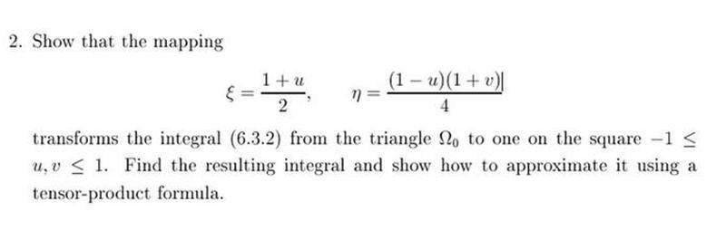 | 想要在一个三角形上算奇异积分,奇点的问题比较难解决,有人跟我说可以用 psuedo-spherical quadrature,假设奇异点在三角形的一个顶点上的话,可以通过变换将三角形变成矩形,而那个顶点的角变成一条边。请问有人知道这是什么映射/变换么?谢谢大家啦! |