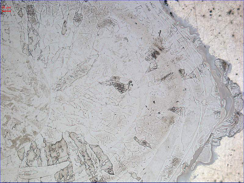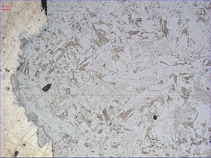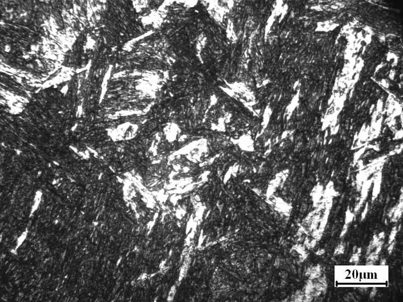 第四张是板条马氏体+铁素体(小白块),不过弧形的白色大块是铁素体吗?怎么能够形成这样的形状呢?楼主最好打一下显微硬度,看看弧形的白色大块硬度是多少,这样有助于判断。