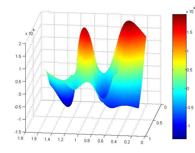 不好意思,上一楼代码没复制好。已修正: Z矩阵: Z = 1.0e+004 * Columns 1 through 16 1.3645 1.4500 1.5384 1.6272 1.7136 1.7940 1.8647 1.9211 1.9579 1.9690 1.9469 1.8824 1.7657 1.5895 1.3550 1.0786 1.3216 1.4082 1.4980 1.5887 1.6773 1.7604 1.8339 1.8933 1.9335 1.9481 1.9295 1.8680 1.7526 1.5736 1.3311 1.0428 1.2772 1.3648 1.4560 1.5484 1.6391 1.7245 1.8006 1.8629 1.9062 1.9241 1.9090 1.8507 1.7369 1.5555 1.3043 1.0030 1.2314 1.3197 1.4121 1.5062 1.5988 1.6864 1.7649 1.8298 1.8758 1.8968 1.8849 1.8300 1.7182 1.5346 1.2742 0.9585 1.1842 1.2731 1.3666 1.4621 1.5565 1.6460 1.7267 1.7938 1.8422 1.8658 1.8570 1.8052 1.6958 1.5105 1.2403 0.9086 1.1356 1.2250 1.3194 1.4162 1.5121 1.6034 1.6859 1.7549 1.8053 1.8310 1.8246 1.7758 1.6691 1.4827 1.2021 0.8523 1.0856 1.1754 1.2706 1.3685 1.4658 1.5586 1.6425 1.7130 1.7649 1.7921 1.7875 1.7412 1.6371 1.4504 1.1587 0.7886 1.0344 1.1243 1.2202 1.3190 1.4175 1.5115 1.5967 1.6682 1.7210 1.7490 1.7453 1.7005 1.5989 1.4126 1.1092 0.7159 0.9819 1.0719 1.1682 1.2679 1.3673 1.4623 1.5483 1.6205 1.6736 1.7015 1.6976 1.6530 1.5531 1.3681 1.0526 0.6323 0.9282 1.0181 1.1147 1.2151 1.3153 1.4110 1.4976 1.5700 1.6227 1.6497 1.6443 1.5982 1.4982 1.3148 0.9872 0.5355 0.8734 0.9630 1.0599 1.1607 1.2615 1.3578 1.4446 1.5167 1.5685 1.5937 1.5854 1.5355 1.4326 1.2501 0.9109 0.4222 0.8175 0.9068 1.0038 1.1050 1.2062 1.3027 1.3894 1.4609 1.5113 1.5338 1.5210 1.4648 1.3549 1.1698 0.8203 0.2883 0.7608 0.8495 0.9465 1.0479 1.1494 1.2459 1.3323 1.4028 1.4511 1.4702 1.4517 1.3867 1.2644 1.0684 0.7103 0.1302 0.7032 0.7913 0.8881 0.9897 1.0912 1.1876 1.2733 1.3426 1.3885 1.4035 1.3782 1.3020 1.1619 0.9407 0.5696 -0.0505 0.6448 0.7323 0.8289 0.9304 1.0319 1.1279 1.2128 1.2805 1.3238 1.3343 1.3016 1.2126 1.0502 0.7876 0.3472 -0.2362 0.5859 0.6725 0.7688 0.8703 0.9715 1.0670 1.1509 1.2169 1.2574 1.2633 1.2229 1.1207 0.9344 0.6234 0.0491 -0.3946 0.5265 0.6122 0.7082 0.8095 0.9103 1.0051 1.0879 1.1521 1.1898 1.1913 1.1436 1.0290 0.8207 0.4703 -0.1033 -0.5045 0.4668 0.5515 0.6472 0.7481 0.8485 0.9425 1.0240 1.0863 1.1214 1.1189 1.0649 0.9401 0.7150 0.3438 -0.1908 -0.5678 0.4070 0.4907 0.5859 0.6865 0.7862 0.8792 0.9594 1.0200 1.0527 1.0468 0.9881 0.8560 0.6215 0.2482 -0.2395 -0.5952 0.3473 0.4299 0.5247 0.6247 0.7237 0.8156 0.8944 0.9533 0.9839 0.9757 0.9139 0.7785 0.5423 0.1809 -0.2608 -0.5963 0.2878 0.3694 0.4637 0.5631 0.6611 0.7517 0.8291 0.8864 0.9155 0.9059 0.8432 0.7083 0.4777 0.1374 -0.2612 -0.5777 0.2289 0.3094 0.4032 0.5017 0.5985 0.6878 0.7637 0.8197 0.8477 0.8377 0.7762 0.6457 0.4268 0.1134 -0.2456 -0.5442 0.1708 0.2504 0.3434 0.4409 0.5363 0.6241 0.6985 0.7532 0.7806 0.7712 0.7129 0.5902 0.3880 0.1048 -0.2175 -0.4992 0.1139 0.1927 0.2847 0.3807 0.4745 0.5605 0.6334 0.6870 0.7142 0.7065 0.6530 0.5411 0.3591 0.1079 -0.1798 -0.4458 0.0589 0.1367 0.2272 0.3213 0.4132 0.4974 0.5687 0.6213 0.6487 0.6434 0.5961 0.4970 0.3378 0.1195 -0.1352 -0.3865 0.0071 0.0827 0.1710 0.2629 0.3526 0.4348 0.5044 0.5561 0.5839 0.5815 0.5415 0.4567 0.3216 0.1368 -0.0862 -0.3235 -0.0415 0.0309 0.1163 0.2056 0.2928 0.3727 0.4406 0.4913 0.5198 0.5206 0.4883 0.4184 0.3081 0.1568 -0.0351 -0.2593 -0.0879 -0.0190 0.0630 0.1493 0.2338 0.3113 0.3773 0.4271 0.4562 0.4602 0.4357 0.3806 0.2947 0.1766 0.0157 -0.1962 -0.1329 -0.0672 0.0112 0.0942 0.1756 0.2506 0.3146 0.3633 0.3929 0.4000 0.3829 0.3417 0.2789 0.1932 0.0637 -0.1367 -0.1764 -0.1139 -0.0393 0.0402 0.1185 0.1907 0.2525 0.3000 0.3298 0.3397 0.3290 0.3002 0.2583 0.2034 0.1062 -0.0838 -0.2188 -0.1594 -0.0885 -0.0127 0.0622 0.1315 0.1910 0.2371 0.2669 0.2788 0.2735 0.2549 0.2304 0.2035 0.1398 -0.0409 -0.2602 -0.2038 -0.1366 -0.0646 0.0069 0.0732 0.1302 0.1746 0.2040 0.2173 0.2159 0.2047 0.1932 0.1895 0.1607 -0.0125 -0.3007 -0.2471 -0.1836 -0.1153 -0.0474 0.0157 0.0701 0.1126 0.1411 0.1550 0.1559 0.1493 0.1453 0.1571 0.1634 -0.0047 -0.3402 -0.2895 -0.2296 -0.1650 -0.1007 -0.0409 0.0107 0.0511 0.0783 0.0919 0.0936 0.0884 0.0861 0.1022 0.1399 -0.0261 -0.3790 -0.3310 -0.2746 -0.2137 -0.1530 -0.0966 -0.0479 -0.0099 0.0156 0.0281 0.0291 0.0227 0.0165 0.0235 0.0743 -0.0880 -0.4169 -0.3717 -0.3186 -0.2615 -0.2044 -0.1513 -0.1057 -0.0702 -0.0468 -0.0360 -0.0370 -0.0469 -0.0612 -0.0749 -0.0721 -0.1931 -0.4541 -0.4115 -0.3617 -0.3082 -0.2547 -0.2050 -0.1625 -0.1297 -0.1087 -0.1003 -0.1041 -0.1189 -0.1438 -0.1823 -0.2611 -0.3162 -0.4905 -0.4505 -0.4040 -0.3539 -0.3039 -0.2577 -0.2183 -0.1884 -0.1700 -0.1643 -0.1715 -0.1920 -0.2275 -0.2869 -0.3859 -0.4259 -0.5261 -0.4887 -0.4453 -0.3986 -0.3521 -0.3092 -0.2730 -0.2461 -0.2305 -0.2276 -0.2385 -0.2645 -0.3093 -0.3815 -0.4781 -0.5142 -0.5610 -0.5262 -0.4857 -0.4423 -0.3992 -0.3597 -0.3266 -0.3025 -0.2897 -0.2898 -0.3043 -0.3353 -0.3867 -0.4641 -0.5518 -0.5849 -0.5952 -0.5627 -0.5252 -0.4850 -0.4452 -0.4089 -0.3788 -0.3577 -0.3477 -0.3506 -0.3683 -0.4031 -0.4585 -0.5357 -0.6130 -0.6424 -0.6286 -0.5985 -0.5637 -0.5266 -0.4900 -0.4568 -0.4298 -0.4115 -0.4041 -0.4096 -0.4300 -0.4675 -0.5243 -0.5978 -0.6649 -0.6899 -0.6613 -0.6335 -0.6014 -0.5672 -0.5337 -0.5035 -0.4793 -0.4636 -0.4587 -0.4665 -0.4889 -0.5278 -0.5840 -0.6520 -0.7094 -0.7296 -0.6932 -0.6676 -0.6380 -0.6067 -0.5761 -0.5487 -0.5273 -0.5141 -0.5114 -0.5210 -0.5448 -0.5841 -0.6381 -0.6995 -0.7481 -0.7632 -0.7243 -0.7008 -0.6738 -0.6451 -0.6172 -0.5926 -0.5737 -0.5628 -0.5620 -0.5731 -0.5977 -0.6362 -0.6870 -0.7414 -0.7817 -0.7917 -0.7546 -0.7332 -0.7085 -0.6824 -0.6571 -0.6350 -0.6185 -0.6096 -0.6104 -0.6226 -0.6473 -0.6844 -0.7311 -0.7785 -0.8112 -0.8161 -0.7842 -0.7647 -0.7422 -0.7185 -0.6957 -0.6760 -0.6616 -0.6545 -0.6567 -0.6695 -0.6937 -0.7287 -0.7709 -0.8115 -0.8371 -0.8370 -0.8129 -0.7953 -0.7749 -0.7535 -0.7330 -0.7154 -0.7030 -0.6975 -0.7007 -0.7137 -0.7370 -0.7693 -0.8068 -0.8409 -0.8599 -0.8549 -0.8408 -0.8250 -0.8066 -0.7873 -0.7689 -0.7534 -0.7426 -0.7385 -0.7424 -0.7552 -0.7772 -0.8067 -0.8393 -0.8672 -0.8800 -0.8703 -0.8680 -0.8538 -0.8373 -0.8199 -0.8035 -0.7898 -0.7806 -0.7775 -0.7818 -0.7942 -0.8146 -0.8408 -0.8687 -0.8906 -0.8977 -