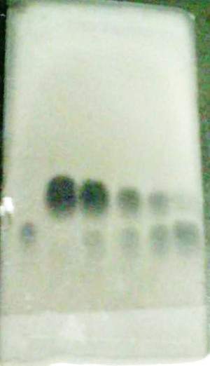 本人新手 现在在分离一个木脂素类物质 这个板的展开剂是 石油醚:乙酸乙酯=1:1 想要上方的点 但两点的极性太近 分不开 想求教各位帮个忙 谢谢!