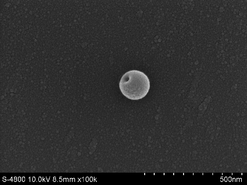 我用双亲性物质在水里组装得到的结果。这个是扫描电镜的结果。球上的洞是怎么来的?还有这个能证明它是由空腔的囊泡吗?