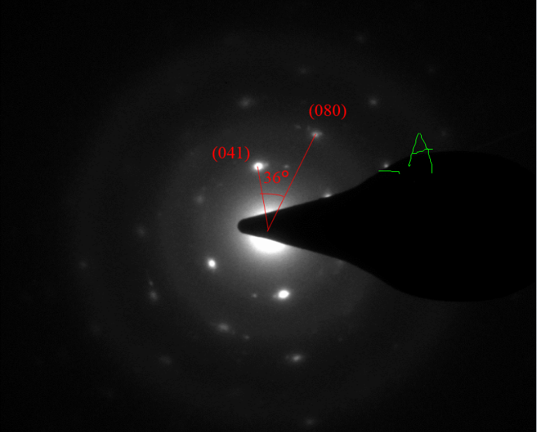 如图,我选了三个点进行标定,测量计算之后得到晶面间距,然后用晶面夹角公式验证 结果只有2个晶面符合夹角公式,这两个晶面与图中所标出的A都不符合怎么办? PS:我测试的材料是两种复合物。那有没有可能A是另一种物质的晶面?如果不能这样说,那么我在标定的时候能不能只标符合公式的两个晶面而不去标A |