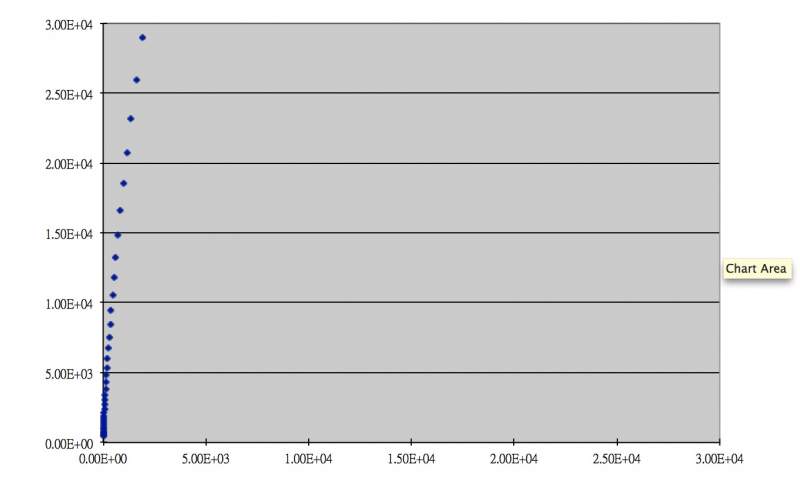 是个圆弧,你把横坐标的最大范围改写的与纵坐标一致,可能看的明显些。