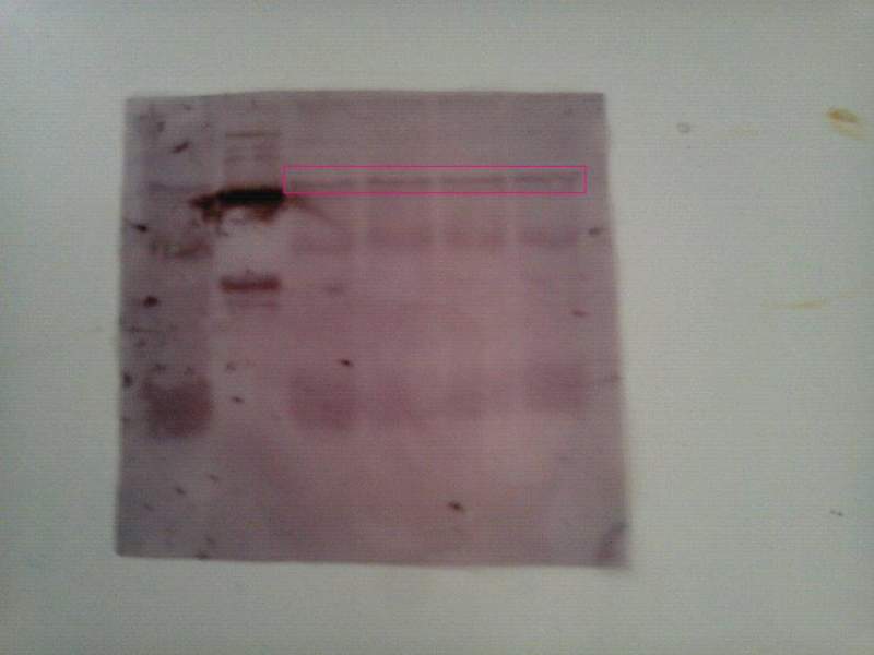 本人在做视蛋白的原核表达,在做western blot时需要设计一个阴性对照,想请教各位大侠要怎么设计啊?直接的大肠杆菌不加质粒???我的重组蛋白没有加IPTG诱导和加了IPTG诱导都处理目的条带啊~~框框部分是目的条带,Mark后面的是蛋白,奇数条带没有IPTG,偶数有IPTG。Mark前面是空白质粒加了IPTG的,大家帮忙分析分析,再帮我看看要怎么设计阴性对照,谢谢呐~~~ fff.JPG |