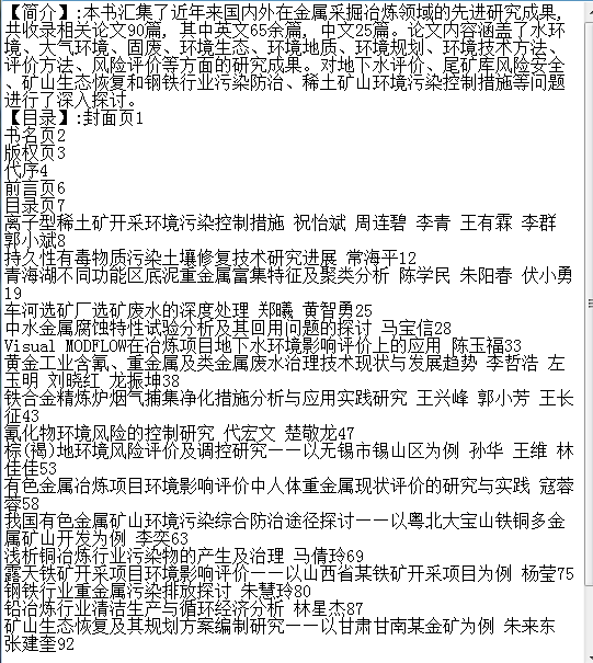 【转载】[金属采掘·冶炼环境影响评价国际研讨会论文集].任洪岩,程胜高.高清文字版