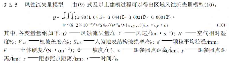 我再计算这个风蚀量的时候有积分运算,不太会,希望能给与帮助,传一篇文献希望有所帮。我用的就是这篇文章得出的公式。除了坡度和植被覆盖度是随着地点变化而变化的,其他都取得是常数