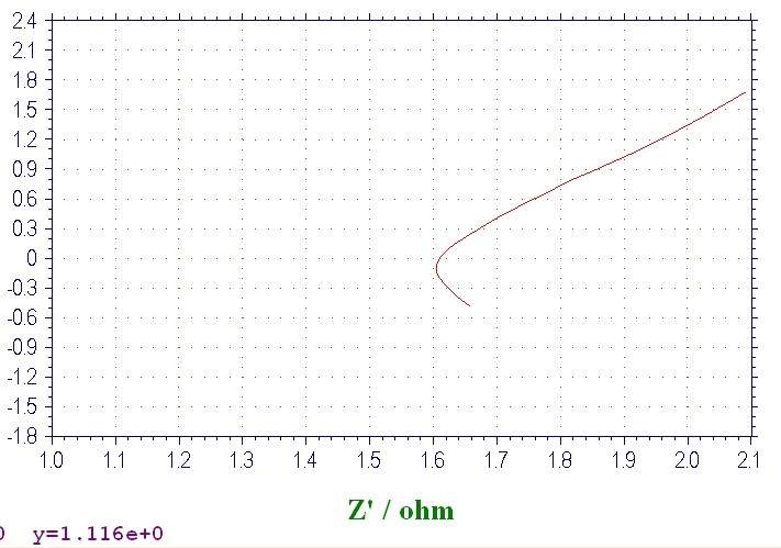 本人小菜鸟一枚,做超级电容器,测试的交流阻抗为什么这么难看呢?连大概的形状都没有啊、、开路电压都是负的,半圆位置全在零下,准确的说都不是半圆,求大神指教!很苦恼!拜托了!!!!111111是2222222的局部,333333的低频设置成了0.1,前一个是0.01 111111.jpg 2222222.jpg 3333333.jpg |