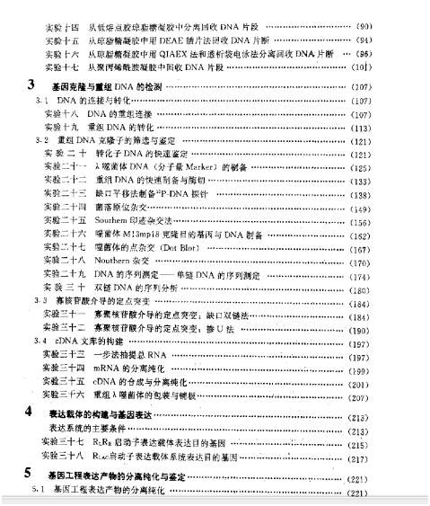 今天老板对我说,一定要看看这本书,介绍了酶切等等问题,于是费了九牛二虎之力搞到,还没看呢。 私心想着若是虫友们共同进步,想必是极好的,因此上传以供有用之人备用。 (PDF扫描版,可能有的地方不太清)现增加目录,供参考。 目录1.jpg 目录2.jpg 目录3.jpg [ Last edited by 鬼羽帝魂 on 2014-3-19 at 16:05 ] |