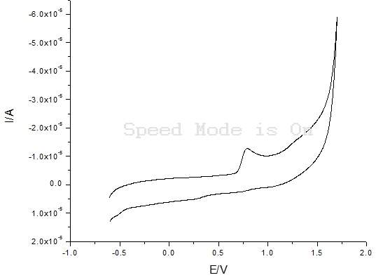 图1为扫描电压为-0.6~1.8V时的CV图,其中,在0.8V处出现一个氧化峰