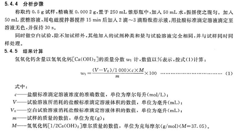 我在实验室测定氢氧化钙固体的含量,方法采用行标HG/T4120-2009,具体步骤如下图。但是我滴定后盐酸消耗量严重过量,理论值在13ml左右,我的结果能达到73ml,结果根据公式所得纯度达到110%多,求助,谢谢!盐酸浓度1mol/L [ Last edited by sddtc888 on 2014-3-18 at 21:06 ] |