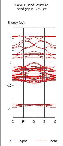 大家好 我用CASTEP计算的是自旋极化体系 反铁磁性 含有过渡金属元素 计算下来的能带图 如下所示 为撒 我的能带图 没有蓝色部分 也就是自旋向上的部分 而只有红色的自旋向下的部分 是不是我算错了 谢谢 bandstructure.jpg |