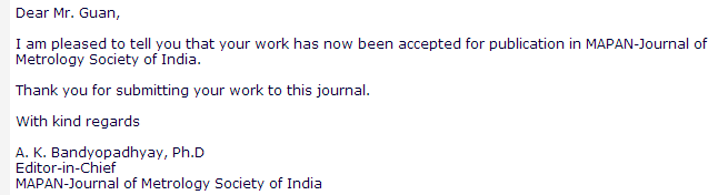 有做测试计量的同学,可以考虑投一下,印度计量学会的杂志,虽然点不高~但是个正经杂志。