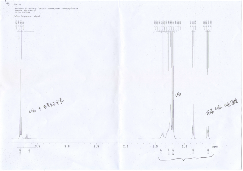 刚接触核磁,请大家帮忙分析一下这两张谱图,一个氢谱一个碳谱,不知道根据谱图能不能推测结构式啊?样品中有Si,其他就是C、H、O了。可能是两种物质,一个是溶剂,另外一种大概是硅氧烷。