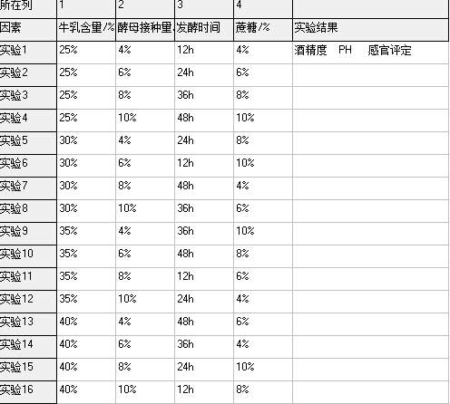 乳酒制作的实验数据