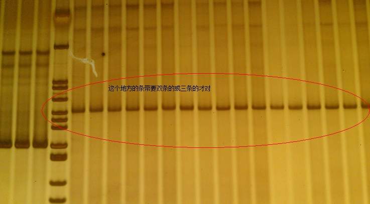 我跑的pcr产物跑大板,跑出都是一条带,帮分析一下,我要的目的是两条带或三条,找多态性,下面是跑的图片,跑了好多都是单一条带,但是测序结果显示是有多态性的,帮帮分析一下