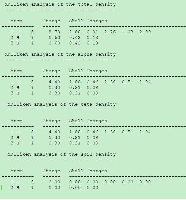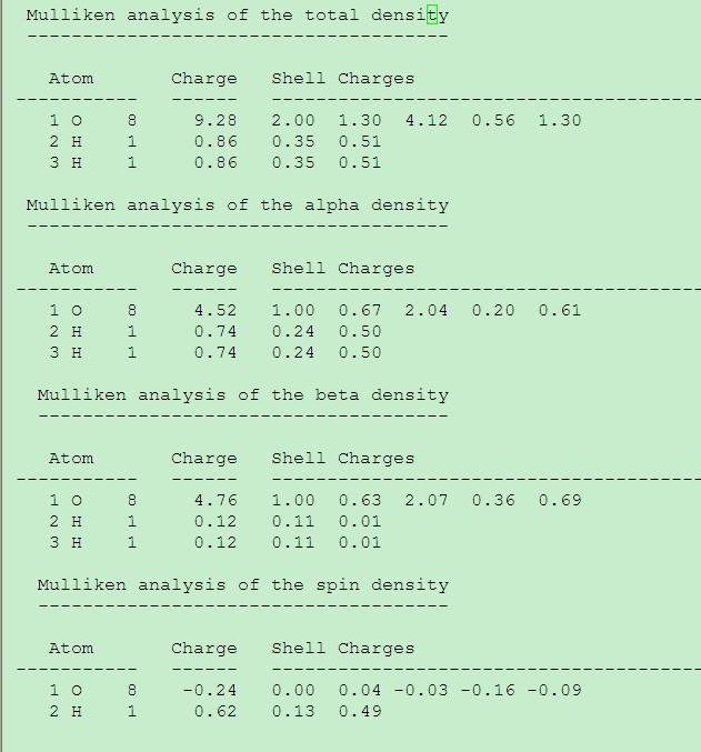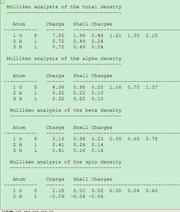 我想用mulliken 分析每个原子的带电情况,可是感觉自己的分析不是很靠得住,请求帮助。 一下三个mulliken电荷能分别说明氧原子