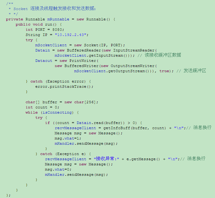 如题:PC端VB编写服务端与Android编写的客户端在gprs下通信方式。在wifi下通信已经实现,在gprs下能连接,但是不能发送和接收的数据。 线程实时连接和接收数据,按钮发送数据。代码如图 1.png 2.png |