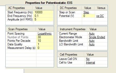 这是用普林斯顿的VersaSTAT 3的交流阻抗的参数设置,麻烦大家帮忙看看右边的Potential 后边的选项是选vs OC(开路电压)还是vs Ref(相对参比电压),默认的数都是0对吗?如果不是该怎么计算这个值??