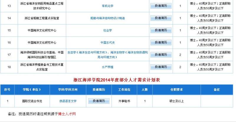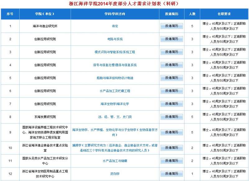 浙江海洋学院2014年诚聘海内外高层次人才