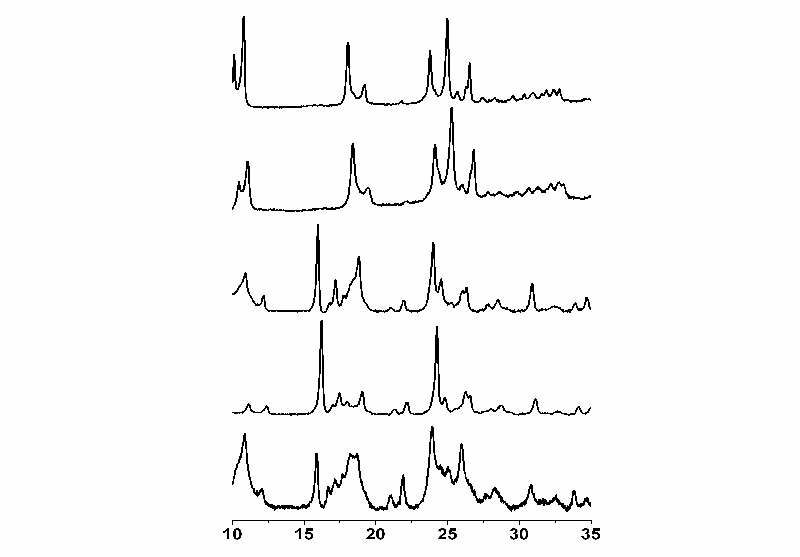 同一种配合物,制备方法不同,然后得到以下几种XRD图谱,大家可以帮忙分析下晶型之类的发生了什么变化吗,本人新手。该配合物结晶性较差,试过STEM,没得到衍射图谱。