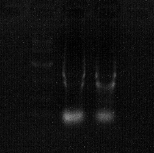 细菌RNA提取后跑电泳出现一条暗带和在泳道中弥散都是什么原因?