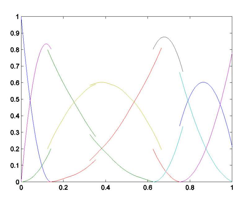 画的NURBS基函数,为什么输出eps格式时在分段区间边界处显示过于间断(理论上是间断的,但是输出到图片也太明显了,见下图)?如果输出位图而且取样点较多就不明显(如果x取点较少也会有间断,)程序代码如下,求大神帮忙