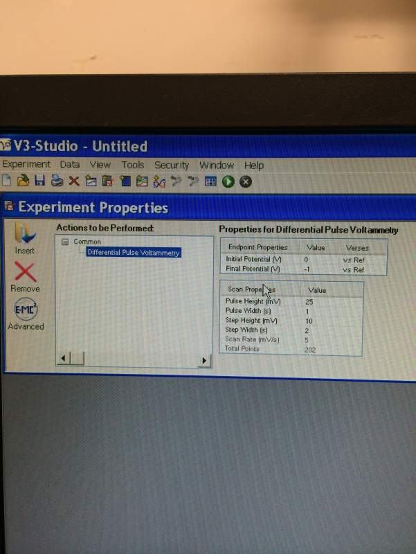 1.一般机内会自动显示,如果没显示考虑下石墨烯的浓度和分散效果等,效果好自动出没问题。如果确实手动标峰,应该也能的。我用的是CHI160b 那里面有manual results可以作切线。你的应该也能找到。 2.DPV的话,电位选择比较总要。一般用CV确定峰电位,然后DPV±0.2V或±0.3V即可。参数的话:扫速40mV/s 电位脉冲范围自己设定,脉冲高度50mV 脉冲宽度50ms等大部分是机内默认的。如果电位没问题的话,那可能就是石墨烯层不均匀或电极不够清洁等。 |