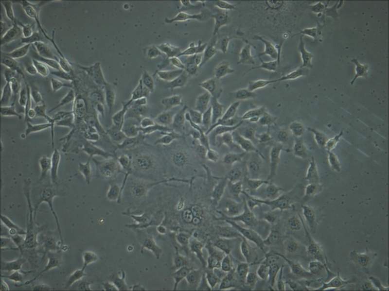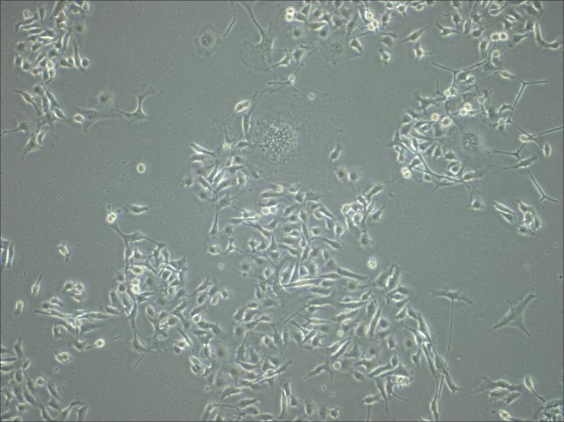 应该考虑是细胞老化或者支原体污染,支原体污染的可能性大些,细菌和真菌污染细胞会迅速变圆裂解死亡培养基浑浊,而支原体污染细胞不会迅速死亡,表现一般是细胞的生长变缓,细胞收缩,贴壁细胞脱落裂解、黑色颗粒型物质增加,细胞变大或形成空泡。