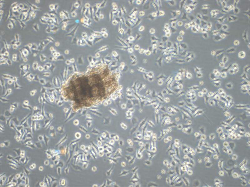 最近养细胞发现有些奇怪的东西,不知是漂起的死细胞团还是杂质还是被污染了细菌真菌霉菌什么的?告急求助,谢谢~