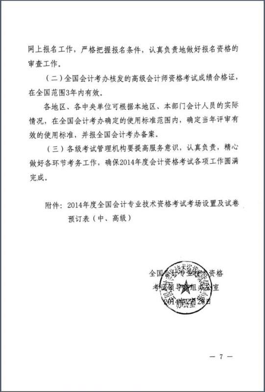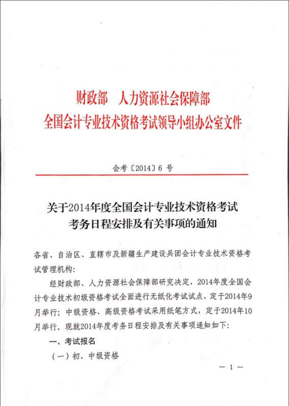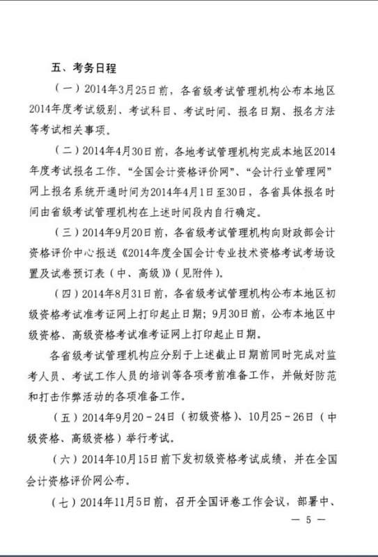 关于2014年度全国会计专业技术资格考试考务日程安排及有关事项的通知