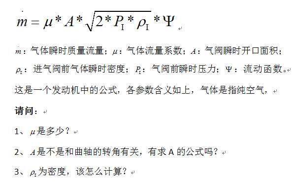 既然是瞬时流量,那么就是时时刻刻都在改变的,A肯定是变化的这个应该有你们的机械知识算吧,空气的密度与温度有关,可以查表得出。按照流体力学知识你这属于孔口管嘴出流,气体的流量系数=1/根号下(1+此处的局部阻力系数)