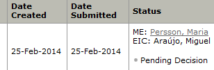 祝贺一下已经发表的论文,被拒的改改再投吧!我想问一下,pending decision 以后的状态是啥?谢谢了