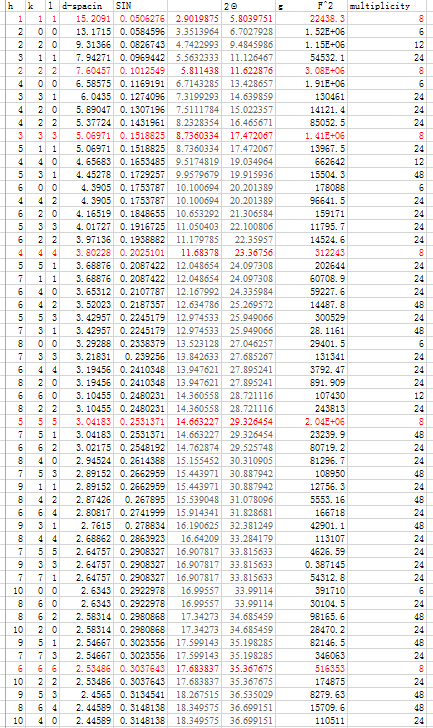 我搜了一些帖子学了一点,但是以前完全没接触过,还是不懂,老师说让我标定出晶面的生长方向,我先在FFT里面测量了一下衍射斑点到原点的距离,然后取倒数,应该就是d值了吧,与这种物质的hkl对比了一下不是很吻合,最后确定的四边形不符合四边形法则
