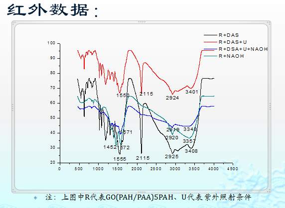 氢氧化钠分解浸入过DAS的PAA和PAH组装多层膜,组装于石墨烯片层之上的!这是实验过程中各个样品的红外数据。求解析红外光谱图!不胜感激!