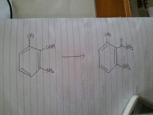 我最近在做毕业实验,关于从羧酸合成酰胺。我的反应是从6-甲基-2-氨基苯甲酸合成6-甲基-2-氨基苯甲酰胺。我是分两步做的 1、将羧酸与二氯亚枫反应生成酰氯。 2、将生成的酰氯溶解在二氯甲烷中,然后逐滴加入到冷的氨水中(因为实验室条件限制没有氨气)。 但是没得到产物,我在实验室待了俩星期了,实验都没有进展,希望各位高手指点啊!在这里先谢过大家! psb.jpg |