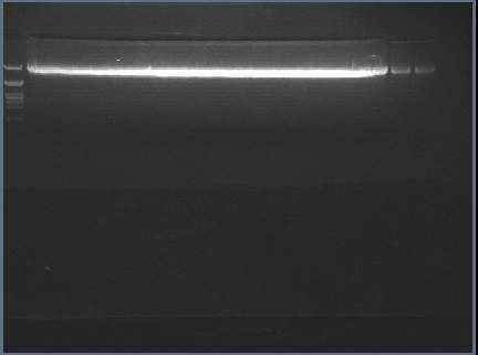 1. 回收不到东西: 看看你的TAE的pH值是否正确,我们实验室曾经有一次TAE 的PH值不正确导致回收不了DNA。另外你胶回收的洗脱液用的是什么,是水么?洗脱液的PH好像要在8左右,保持碱性,要不然洗脱不下来。 2. 未酶切完全,回收回来的可能就有质粒,你那弥散可能就是质粒。 3. 你圈的东西是不是因为跑胶的问题导致的呢,看你胶配的不是很好,另外,给个建议,不要用这么大的孔来跑,我觉得这样会导致弥散严重,建议用正常的胶回收孔来跑(个人建议)。 希望对你有帮助。 |