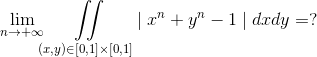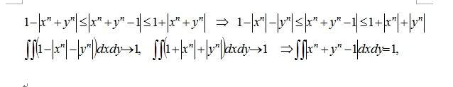 [img]https://latex.codecogs.com/gif.latex?\lim\limits_{n\to+\infty}\iint\limits_{(x,y)\in[0,1]\times[0,1]}\mid&space;x^n+y^n-1\mid&space;dxdy=?[/img] 请写出详细推导过程! [ Last edited by Edstrayer on 2014-4-29 at 19:29 ] |