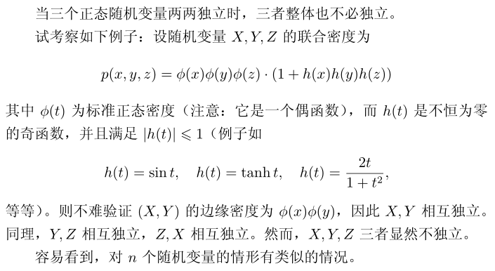 对于随机变量X1,...Xn,它们之间两两独立不能推出X1,...Xn是相互独立的?