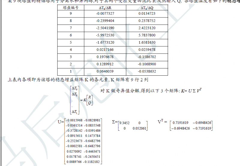 最近在研究萃取精馏 研究到奇异值分解做不下去了 本人没有学过MATLAB ,希望高手给写个奇异值分解的程序 就用图片中的例子就行 谢谢!!