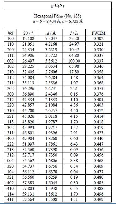急求三聚相g-C3N4的CIF文件或者建模方法?现仅知道空间群,晶胞参数,但不知道原子坐标。