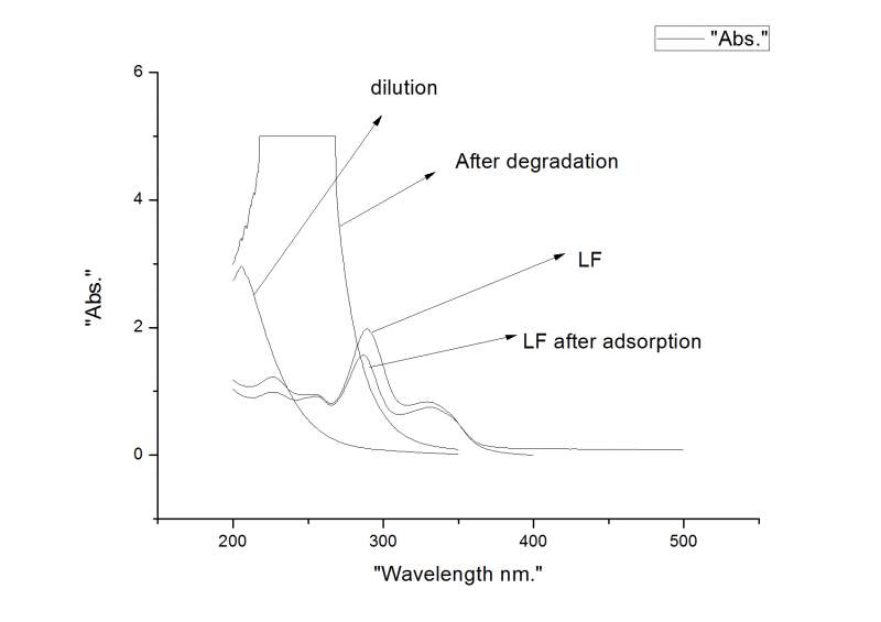 氧化铁/H2O2降解左氧氟沙星,降解后紫外测试,吸光度的峰一下子高出检测限是为啥啊?