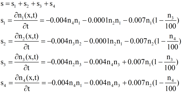 | 如果j(x,t)已知;则有 n(x,t)_t=s-j(x,t)_x可以得到:n(x,t)=Int (s-j(x,t)_x)dt +f(x); 利用n(x,t)的其他信息 确定积分中的积分常(函)数. |
