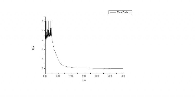 我得到的紫外可见光谱在200~260范围内发生溢出,不知道是什么原因。我已经把样品稀释的很稀了,连在500nm左右的吸收峰都变得很小了。希望懂的同学或老师帮忙分析一下,先谢谢了。