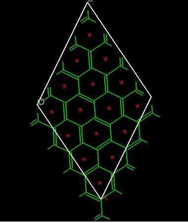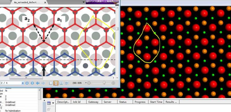 大学时做的毕业课题是分子模拟的,高分子晶体,当时在MS的建模方面重点学了下晶体、高分子链和坐标计算 前几天一个人给我看了篇文献的结构,我感觉很有趣,就试着做了下,以此为例写写自己的建模思路,希望对新来的有帮助 相关文献:百度文库搜索 《An extended defect in graphene as a metallic wire》 PS:目前文献没有全部看完,还有很多地方不懂,所以结构也只做了一半 ——————正文开始—————— 关键词:make P1、supercell、坐标计算、定位原子、move to 建立3层Ni 1、导入MS自带的graphite结构 #原Ni的结构与石墨烯近似,所以在石墨烯的结构上改# 2、build-symmetry-make P1,删除一层原子 #建立奇数层C原子# 3、修改C原子properties的fractional Z为0.5 4、选择build supercell 4*4*3,可以查看三层原子的Z分别为0.833,0.5,0.166,后面有用 5、现在是建立了3层C,为了便于区别,可以选定一层C原子,右键display style设定颜色 6、区别于石墨烯,Ni原子是菱形周期,需要删除部分原子。为避免误操作,选择第二第三层C原子,右键display style,atom display style为none 7、根据文献,第一层Ni原子位置很容易确定 8、第二层Ni原子位于 第一层 Ni菱形 上半部分正三角形 的几何中心,也很容易剔除多余原子得到第二层Ni原子的位置 9、第三层Ni原子位于 第一层 Ni菱形 下半部分正三角形 的几何中心,取下半部分正三角形三点的XY坐标(0.6666,0.0833)(0.9166,0.3333)(0.9166,0.0833)做平均值,加上第三层的Z坐标,得到(0.8333,0.1666,0.1666) 10、add atom,选S作为定位原子,输入坐标(0.8333,0.1666,0.1666),删除多余C-S化学键 11、选择第三层原子,右键select fragment,点击move to按钮,单击第三层任意一个原子,再单击S原子。删除S原子 #将第三层原子按两次单击的向量平移# 12、根据文献剔除多余原子 13、右键空白处display style-ball and stick显示所有三层C原子,lattice display style为in-cell 14、全选C原子,properties中的element symbol修改为Ni 17、最后,可以修改display style的ball radius区分不同层的球半径,lattice range的A、B为5、5,lattice的line为none ——————3层Ni建模结束—————— |